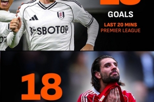 本賽季在英超賽場(chǎng)上,富勒姆在比賽最后20分鐘共打進(jìn)18球,而利物浦在這個(gè)時(shí)間段里則丟了18球,兩隊(duì)的表現(xiàn)大相徑庭。