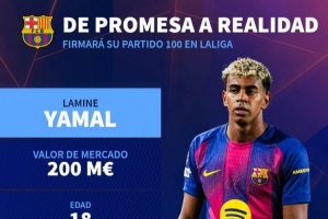 據(jù)德國轉(zhuǎn)會市場統(tǒng)計(jì),如果18歲的亞馬爾此役出戰(zhàn),他將達(dá)成西甲100場比賽里程碑。