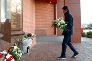 巴黎俱樂部主席納賽爾、主帥恩里克攜球員前往安菲爾德球場,悼念希爾斯堡慘案遇難者,并向若塔及其兄弟安德烈·席爾瓦的紀(jì)念碑獻(xiàn)花。