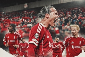 利物浦官方社媒發(fā)布了為此役制作的海報,范戴克、?;倏?、薩拉赫、弗林蓬、喬·戈麥斯出鏡。