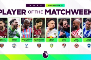 體育資訊4月14日訊 英超第32輪戰(zhàn)罷,英超官方也評(píng)選出本輪比賽最佳球員候選名單,具體如下: