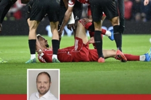體育資訊4月15日訊 利物浦前鋒?;倏嗽诮裉炝璩窟M(jìn)行的歐冠比賽中受傷離場,專家尼古拉·博德里耶表示,90%是跟腱斷裂的重傷。