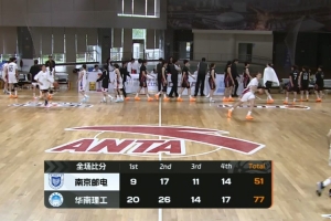 末節(jié)大比分領(lǐng)先之后華南理工主做防守,雖然沒(méi)能像前三節(jié)那樣壓制對(duì)手但場(chǎng)面部落下風(fēng),優(yōu)勢(shì)一直維持在20分以上不給對(duì)手任何機(jī)會(huì)。最終,華南理工77-51大勝南京郵電大學(xué)拿下比賽。