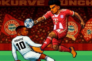拜仁官方社交媒體發(fā)布了一張極具像素復(fù)古風(fēng)格的賽前海報(bào),海報(bào)中拜仁邊鋒迪亞斯與皇馬前鋒姆巴佩在空中激烈對(duì)抗。