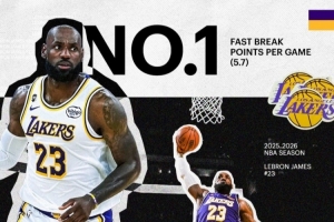 體育資訊4月16日訊 今日,湖人官推更新一張海報,祝賀球星詹姆斯本賽季常規(guī)賽場均快攻得分5.7分聯(lián)盟第一。