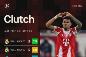 據(jù)Sofascore統(tǒng)計,迪亞斯近5場歐冠比賽皆參與進(jìn)球,5場比賽總計打進(jìn)3球,助攻3次。