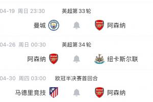 體育資訊04月16日訊 阿森納淘汰葡萄牙體育,晉級歐冠半決賽,繼續(xù)在英超和歐冠雙線爭冠。4月剩余比賽中,阿森納將接連迎來曼城、紐卡和馬競的挑戰(zhàn)。