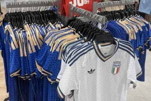 比如意大利隊(duì)2026主場球衣(球員版)從發(fā)售價(jià)1099元已經(jīng)降至550元;主場球衣(球迷版)從699元降至350元;客場球衣(球員版)從1099元降到了550元;客場球衣(球迷版)699元降至350元。