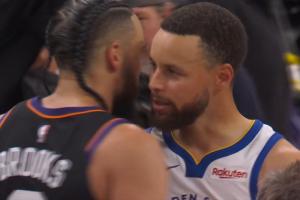 GIF-庫里與狄龍、杰倫·格林擁抱致意!