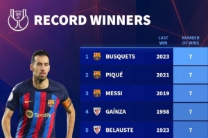 全文摘要:德國轉(zhuǎn)會市場統(tǒng)計了球員國王杯奪冠次數(shù)。布斯克茨、皮克、梅西等5名球員以7次奪冠并列榜首。在前10名球員中,有8名來自巴塞羅那,凸顯了該俱樂部在國王杯賽歷史上的統(tǒng)治地位。