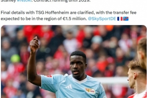 報(bào)道稱柏林聯(lián)合與霍芬海姆的交易最終細(xì)節(jié)已經(jīng)敲定,轉(zhuǎn)會(huì)費(fèi)預(yù)計(jì)約為150萬(wàn)歐元。恩索基是一名27歲后衛(wèi),本賽季在德甲12次出場(chǎng)貢獻(xiàn)1球2助攻。