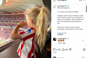 國王杯決賽,馬競點(diǎn)球大戰(zhàn)不敵皇家社會,無緣冠軍。埃里卡·喬佩雷納社媒曬出帶著孩子觀賽的照片,配文:“很難解釋……而最美好的尚未到來。