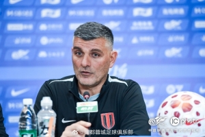4月20日下午,成都蓉城隊主教練約翰?阿洛伊西與隊員馬特烏斯?茹薩出席成都蓉城vs云南玉昆的賽前新聞發(fā)布會。