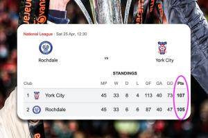 約克城不敗即可升級,羅奇代爾必須爭勝,但無論如何都將有一支單賽季超過100分的球隊(duì)去參加附加賽,甚至無法升級。