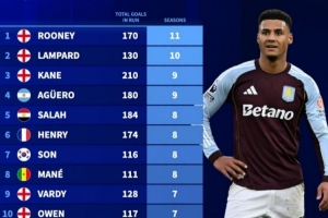 體育資訊4月20日訊 維拉前鋒沃特金斯本賽季英超進球上雙,這已經(jīng)是他連續(xù)第6個賽季做到這一點。德轉(zhuǎn)也盤點了英超歷史球員連續(xù)進球上雙紀(jì)錄榜,具體如下(期間總進球數(shù)+連續(xù)上雙賽季數(shù)):