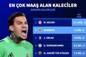 體育資訊4月20日訊 德轉列本賽季歐洲俱樂部門將凈年薪排行,諾伊爾1110萬歐居首,埃德松第二,奧布拉克第三。