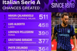 18-19賽季以來意甲創(chuàng)造機(jī)會(huì)榜:
