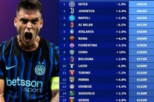 全文摘要:德轉(zhuǎn)會(huì)數(shù)據(jù)顯示,國(guó)米以6.91億歐領(lǐng)跑意甲身價(jià)榜,尤文、那不勒斯、AC米蘭分列二至四位。升班馬科莫(+15%)和卡利亞里(+11%)身價(jià)漲幅顯著,而都靈、克雷莫內(nèi)塞等隊(duì)則有所下滑。