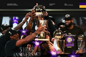 湖人社媒寫到:“2020年10月11日,洛杉磯湖人隊擊敗邁阿密熱火,以總比分4比2贏得總冠軍,拿到隊史第17次冠?!?/p>