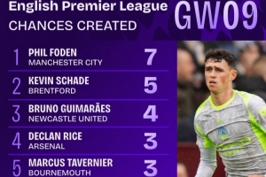 體育資訊10月28日訊 英超第9輪戰(zhàn)罷,據(jù)Squawka數(shù)據(jù)統(tǒng)計,福登是本輪創(chuàng)造機會次數(shù)最多的球員,共計7次。