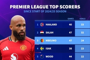 體育資訊10月31日訊 《轉(zhuǎn)會市場》統(tǒng)計了上賽季至今的英超射手榜,哈蘭德已經(jīng)反超薩拉赫居首。