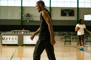 在訓練結束后,馬克西還嘗試了大風車和胯下?lián)Q手扣籃。