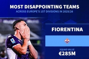 全文摘要:德國(guó)轉(zhuǎn)會(huì)市場(chǎng)盤點(diǎn)本賽季歐洲五大聯(lián)賽最令人失望球隊(duì)。上榜球隊(duì)包括佛羅倫薩、紐卡、畢爾巴鄂競(jìng)技等,其共同點(diǎn)是球隊(duì)身價(jià)遠(yuǎn)高于聯(lián)賽排名,表現(xiàn)嚴(yán)重不符預(yù)期。例如,身價(jià)2.85億歐的佛羅倫薩僅排聯(lián)賽第20,身價(jià)7.52億歐的紐卡也僅列第13,高投入未換來相應(yīng)回報(bào)。