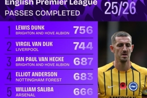 體育資訊11月11日訊 英超聯(lián)賽已經(jīng)進(jìn)行了11輪,squakwa也統(tǒng)計(jì)了本賽季英超成功傳球榜,中場(chǎng)球員僅埃利奧特·安德森和蘇維門(mén)迪。