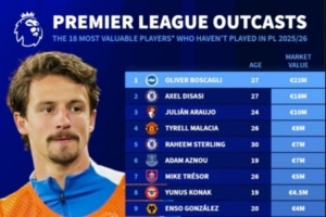 本賽季英超仍未出場(chǎng)球員身價(jià)排行: