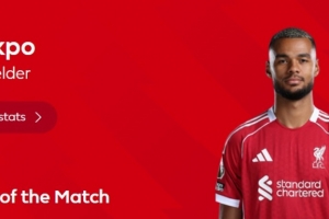 本場比賽加克波表現(xiàn)不俗,傳射建功,賽后他也當(dāng)選英超官方球迷票選全場最佳球員。