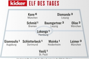 體育資訊12月8日訊 德國(guó)媒體《踢球者》評(píng)出了德甲第13輪最佳陣容,凱恩、奧利塞、萊默爾、施洛特貝克在列。