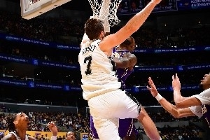 體育資訊12月11日訊 今日NBA杯1/4決賽,湖人主場不敵馬刺。次節(jié)行將結(jié)束之際,湖人進(jìn)攻回合,詹姆斯持球沖到籃下,面對馬刺中鋒科內(nèi)特,直接起跳完成單臂炸裂隔扣。